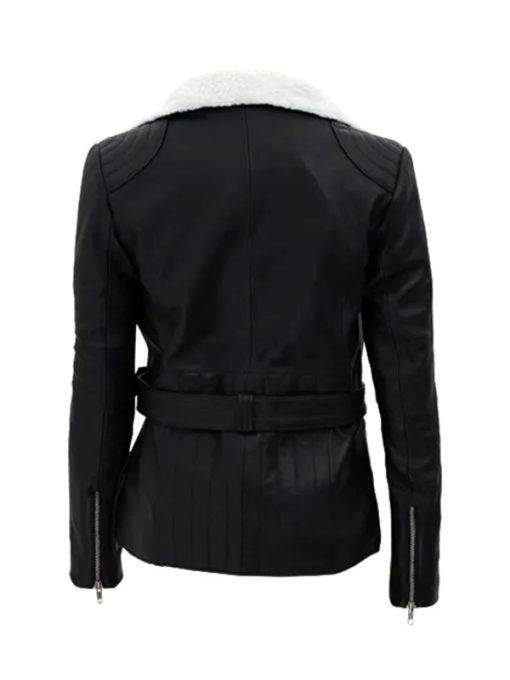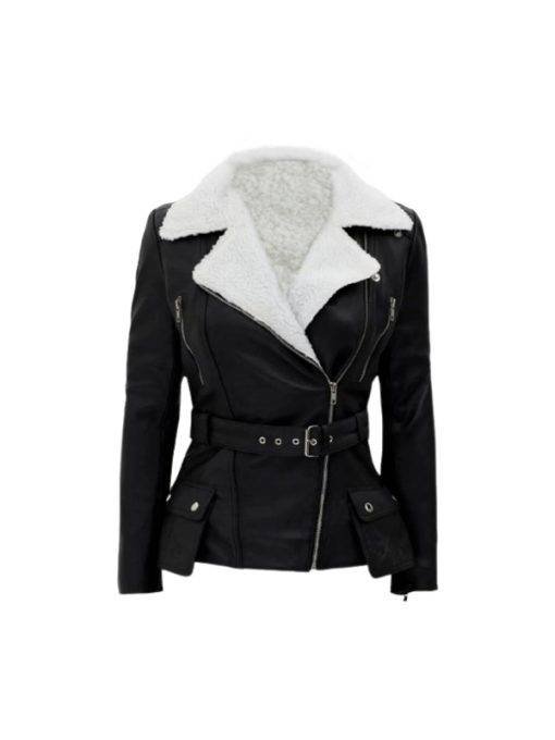 Black Belted Asymmetrical Shearling Women’s Biker Leather Jacket