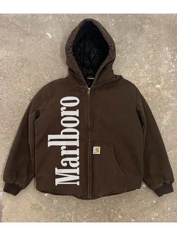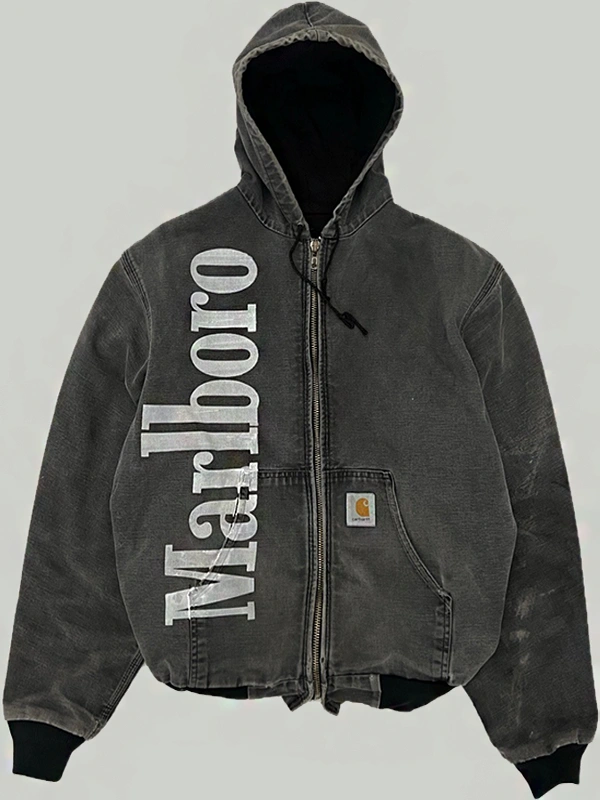 The “Carhartt Marlboro Denim Jacket” is a bold winter wear with Americana Vintage vibes. It’s inspired by Carhartt and Marlboro aesthetics combined. This Jacket looks super cool because of high quality Denim material but this Carhartt Marlboro denim jacket doesn’t look like common denim jackets, it has a hooded collar, front zipper and long rib knitted cuff sleeves. The multiple colour options in this denim jacket like Grey, Red Brown and Cream are worth dying for. Its material is durable and the comfort this jacket delivers is beyond words.