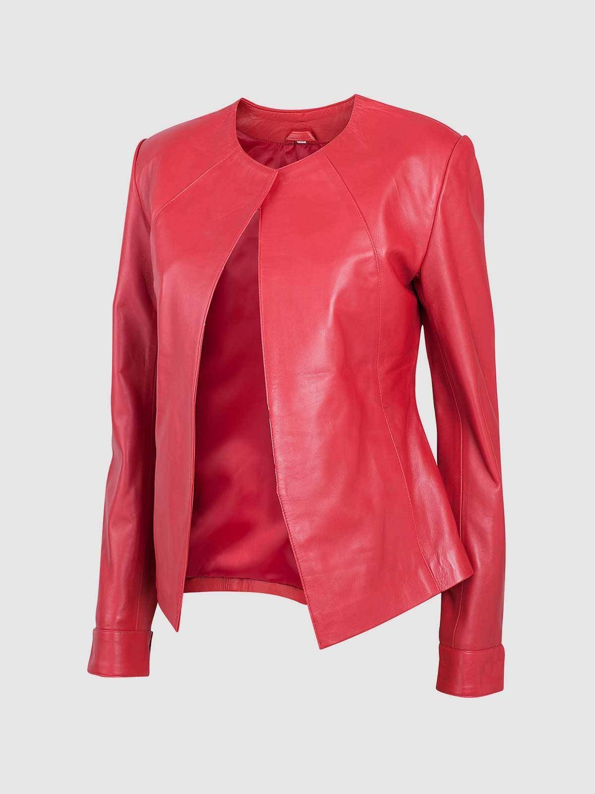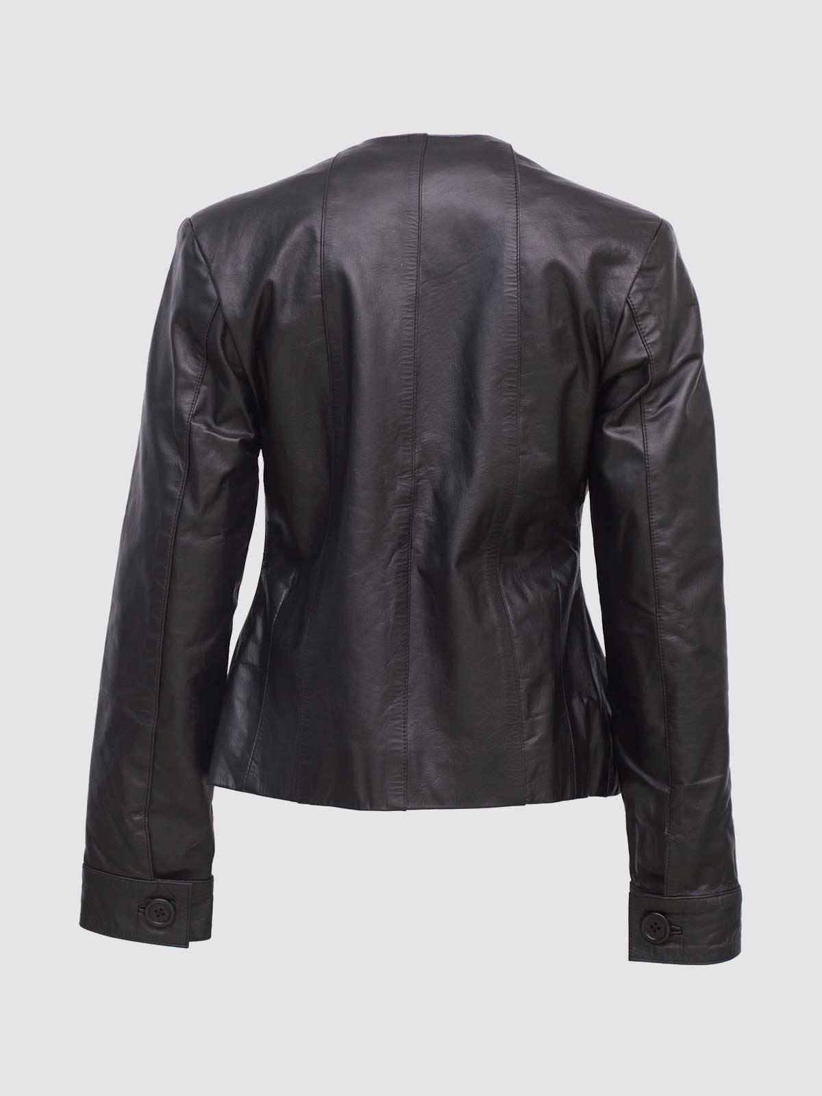 This “Collarless Leather Womens Jacket” is made up with the 100% genuine and real leather material which looks super classy. It looks like a sweater because it has a v style neckline with a collarless style. This jacket also has a quilted pattern design on the front of it and has long length sleeves with zipper cuffs. Also it has no pockets for giving it a sleek and snatchy look. So what are you still waiting for? Get your hands on this jacket right now.