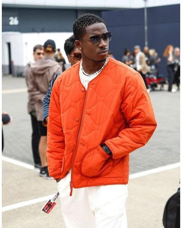 Step into the high quality orange bomber jacket sported by damson Idris as rookie driver Joshua Pearce. Dubbed the blaze; this striking jacket blends cinematic style with street ready to go style highlighting the vibrant high visibility orange quilting reminiscent of race day energy made from durability and comforts and parachute fabric on the exterior and lined soft quilted viscose, this fit is breathable and light weighted.