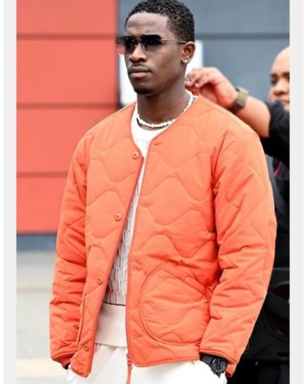 Joshua Pearce Film F1 2025 Damson Idris Orange Quilted Bomber Jacket