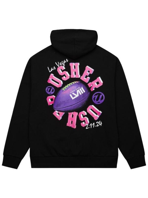 The las vegas usher logo on the backside gives cool vibes, and las vegas super bowl lvii small logo on the front side, look simple and unique. This hoodie is easy to wear and comfortable enough to wear at any gatherings, you can pair it with jeans, straight trousers and joggers it has sizes from small to xxxl. Hurry up, grab it.