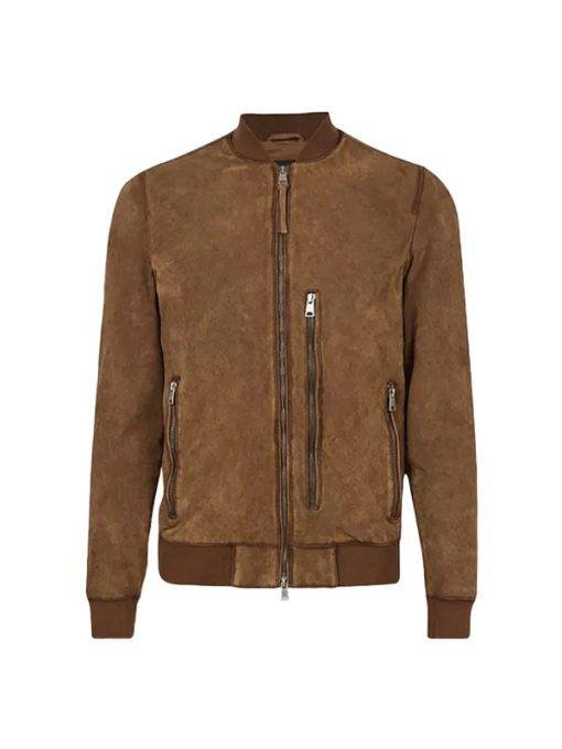 For Men’s Brown Suede Real Leather Bomber Jacket