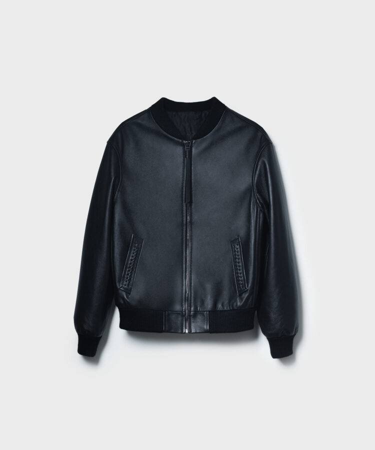 It features a sleek zip closure, ribbed cuffs and hem, rib knitted collar and multiple pockets, two on the front side waist and two on the interior for both flair and function. “Mens Real Black Leather Bomber Jacket” has a soft inner viscose lining which keeps you warm and comfortable all day long. The best way of wearing this jacket is with jeans and boots for a rugged look, or you can wear it over a hoodie for urban edge.
