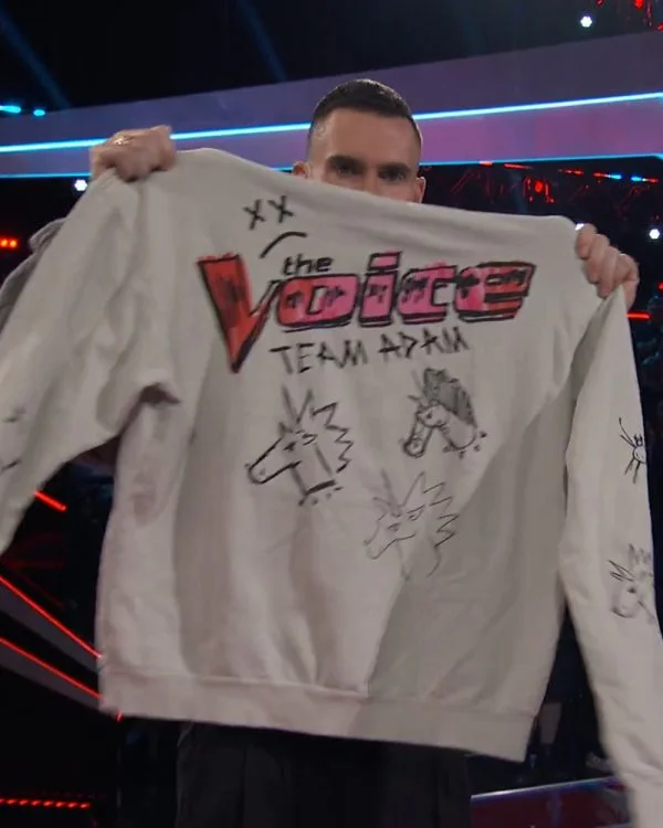 S27 The Voice Team Adam Levine White Printed Hoodie