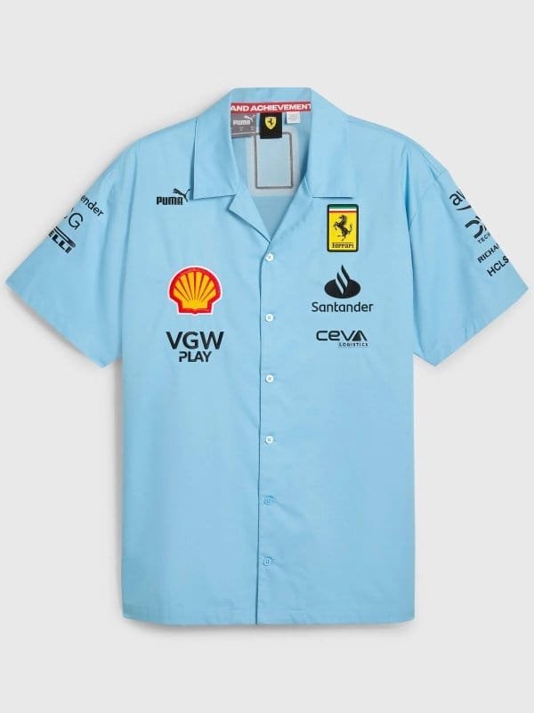 Get Ready for race day with the Scuderia Ferrari F1 Racing Miami GP Blue Shirt. Designed to celebrate the energy of the Miami Grand Prix, this Ferrari F1 Blue shirt has a vibrant blue tone that is noticeable for the excitement of the track. Made from the best, perfect and breathable cotton fabric for maximum comfort. It’s perfect for enjoying your favorite team’s style. You can wear it at home, when you’re watching the race. The shirt is glossy, shiny and sporty.