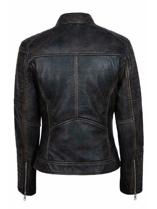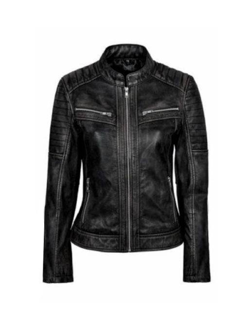 Cafe Racer Slim Fit Distressed Women’s Black Motorcycle Jacket
